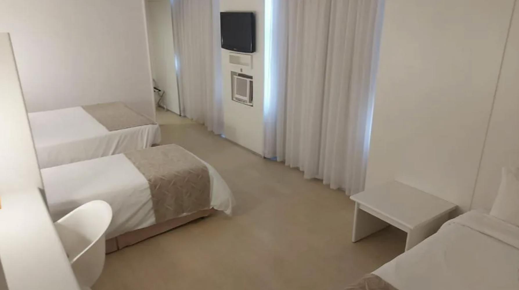 A spacious 27 m² room with one double bed and two single beds, ideal for families or groups of up to four people. Equipped with air conditioning, Wi-Fi, TV, safe, minibar, shower, telephone, and complimentary breakfast.