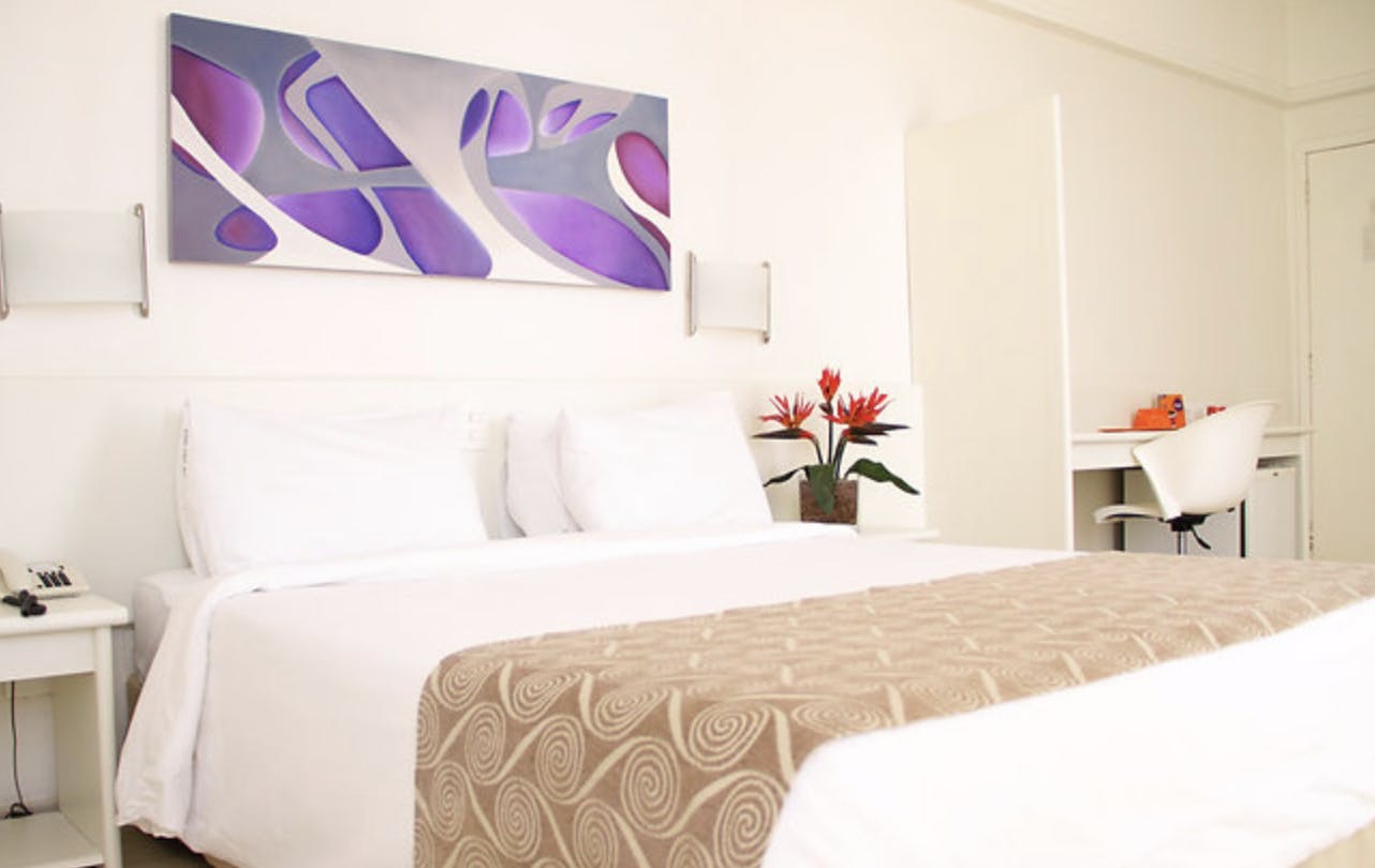 A spacious 27 m² room with a Queen-size bed, providing extra comfort for couples or guests who prefer more space. Includes air conditioning, Wi-Fi, TV, safe, minibar, shower, telephone, work desk, towels, and complimentary breakfast.